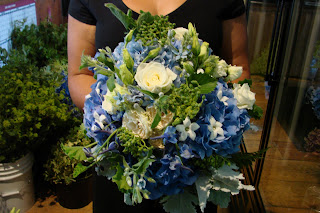 Blues!! August 26, 2009 by emily These are some samplings of blue arrangements and bouquets with hydrangea themes. Other blue flowers I love are hyacinth (in the spring), tweedia, clematis, and delphinium (summer)…