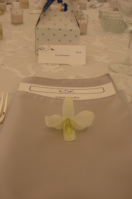 Single dendrobian orchids on the napkins – this is a great special accent and use of this flower’s many blossoms even with over 200 guests!